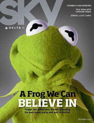 Delta Sky Magazine, the magazine that rests in the pocket of the seat-back of the person in front of you every time you fly with Delta Airlines, has a fantastic article about The Muppets as its cover story for December 2011. Not flying Delta anytime soon? Well, you're in luck! The fine folks at Sky Magazine have put the entire article online just for you (note: probably not just for you)! It really is a fun, exciting read, so sit in a cramped seat in the middle of two people with half of your luggage at your feet, sit back, relax, and enjoy the flight! Er... article.The Muppet Mindset by Ryan Dosier, ryguy102390@gmail.com